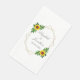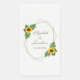 Le design présente des tournesols et des feuilles botaniques sur un cadre géométrique imprimé couleur or.