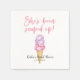 Thème fantaisiste de glace pour serviette en papier de mariage avec illustration aquarelle de boules de glace rose et violet sur un cône gaufrette. Le texte dit "elle a été écoper!" Parfait pour un mariage estival ou une fête de mariage.