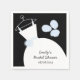 Jolie serviette en papier de douche nuptiale avec une robe mariage stylisée et des fleurs en bleu et blanc sur un arrière - plan noir. Un design personnalisable pour personnaliser avec votre propre texte, photos et idées.