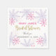 Serviettes pour une fête de mariage sur le thème de l'hiver avec des flocons de neige rose et violet. Comprend une belle police de caractères en faux or et une conception de texte pailleté. Organiser une fête de mariage sur le thème de l'hiver est parfait si c'est autour de décembre ou en hiver. Jolies serviettes féminines pour une fête de mariage. Illustration numérique par Kristine Lee. Pour plus d'informations, visitez www.kristineleedesigns.com
