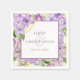 Les serviettes de cocktail de mariage élégantes portent vos noms et date spéciale entourées d'une abondance de fleurs violettes lilas peuvent être utilisées pour vos dîners spéciaux ou même de répétition.