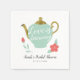 Élégante serviette en papier pour douche de mariée sur le thème de la fête du thé. Ce produit présente une théière verte avec des embellissements dorés et des fleurs corail des deux côtés. Le texte à l'intérieur de la théière dit "L'amour est en train de se préparer". Personnalisez ce produit en ajoutant le nom de la future mariée et la date de l'événement.