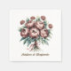 Célébrez la romance intemporelle avec cette magnifique illustration florale d'inspiration mariage. Fleurs marron et mocha aux détails complexes et feuilles verts, idéal pour les invitations, la décoration ou les oeuvres d'art à thème. Collection de fleurs méticuleusement illustrées, principalement dans les tons marron et mocha. Ces fleurs ont des détails complexes, avec des pétales en couches et une structure en étamine au centre. Ils sont accompagnés de feuilles verts, dont certains sont entièrement développés, tandis que d'autres sont encore en herbe. Les fleurs sont positionnées en différents stades de floraison, l'un semblant presque complètement ouvert, l'autre au milieu de l'ouverture, et un couple dans la scène bourgeoise. La composition globale donne un sens de profondeur et de progression dans le cycle de vie des fleurs.