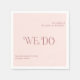 Serviettes mariages modernes avec un agencement minimal avec "We Do" en typographie audacieuse au milieu. Tous les éléments de conception sont en rose pâle et en rose poussiéreux et peuvent être changés dans l'outil d'édition de conception. Ces serviettes de mariage simples mais élégantes sont parfaites pour un mariage informel ou formel.
