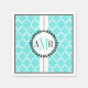 Aqua bleu, blanc quatrefoil motif papier mariage napkin avec initial et monogramme, avec un motif moderne en treillis marocain, une bande blanche du haut au bas de la serviette, une ligne pointillée dessus et vos initiales et monogramme dans un cadre avec une couronne de branche noire. Il y a une bordure noire autour. Cette serviette en papier monogrammée à la mode et mignonne est parfaite pour d'autres occasions spéciales comme des douches nuptiales, des fêtes d'anniversaire, des baby showers, des fêtes d'anniversaire, des fiançailles, des réceptions, etc.
