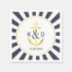 Un design nautique classique avec ancre en or et la date initiale et mariage de la mariée et du marié. Entourée de rayures marines et blanches, cette serviette en papier est un choix merveilleux pour les mariages ou les parties de fiançailles à thème nautique.