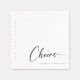 Célébrez l'amour dans le style intemporel avec ces serviettes mariages modernes en noir et blanc "Cheers". Dotés d'un élégant script et d'un design minimaliste, ils sont parfaits pour des réceptions de mariage, des cocktails ou des soirées de fiançailles. Customisez avec vos noms et la date du mariage pour une touche personnelle. Simple, chic et inoubliable