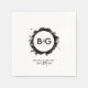 Ce design présente un arrangement élégant mais simple des initiales personnalisées de la mariée et du marié. Les initiales des couples sont encerclées d'un anneau d'aquarelle noir. Ce design noir et blanc est simple mais élégant en tous points. Cette simple combinaison de couleurs crée un style sophistiqué, tendance et chic. Design élégant de serviette de mariage avec des éléments modernes. La configuration simple de la typographie lui donne un style distinct. Des invitations de mariage et d'autres articles de papeterie sont également disponibles.