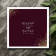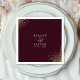 Ajoutez une touche de luxe à votre réception avec ces élégantes serviettes à cocktail présentant un fond bordeaux profond et sophistiqué. Le design est rehaussé par un magnifique éclaboussement de paillettes dorées qui cascade depuis les coins, créant une atmosphère de qualité supérieure et de célébration pour votre bar ou service d'apéritif. Vos noms et date de mariage sont magnifiquement affichés dans une police sérif blanche et épurée, assurant un look soigné et cohérent pour votre décoration de mariage. Ces serviettes personnalisées offrent une esthétique chic et moderne qui complète parfaitement un thème de mariage formel ou romantique. Ces accents fonctionnels offrent une façon raffinée de célébrer votre jour spécial, laissant une impression durable de votre style exquis.