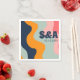 Serviettes en papier personnalisées avec monogramme de mariage rétro vintage années 70 avec typographie grasse groovy et couleurs pastel, y compris ; rose et bleu. Ce produit est facilement modifiable. Si vous avez besoin d'aide pour la personnalisation de ce produit ou si vous avez besoin de produits assortis supplémentaires pour cette collection, veuillez m'envoyer un message via Zazzle.