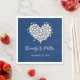 Cette serviette en papier est présentée dans une couleur marine et blanche avec une belle empreinte de coeur perlé, avec des exemples de noms. Customisez cet objet et changez les noms et la date à votre place.