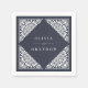 Conçues pour correspondre à notre collection de mariages Beaux-Arts en encre, ces élégantes serviettes de cocktail art déco portent vos noms sur un arrière - plan bleu nuit orné d'ornements en dentelle blanc papel picado découpés style aux coins.