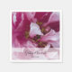 Customisez les jolies serviettes en papier Mariage rose Peony avec les noms personnels de la mariée et du marié et date à utiliser à votre douche nuptiale, fête de jardin ou réception de mariage cocktail heure. Ces élégantes serviettes jetables à fleurs personnalisées présentent une photo florale numériquement peinte d'une fleur de pivoine rose magenta fleurie de pétales bouclés.