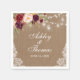 Mariage rustique guirlande de lumières en toile de jute jarres mason dentelle florale aquarelle bordeaux serviettes en papier
