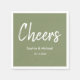 Mariage Cheers Papier Napkin avec sauge arrière - plan vert et texte blanc. Veuillez consulter notre collection de magasins ci-dessous pour les articles correspondants.