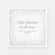 Élégants serviettes en papier blanches avec scintillements argentés pour réception de mariage avec texte "Nous avons décidé pour toujours" et espace pour ajouter les noms des mariés et la date du mariage.