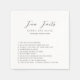 Serviettes de mariage élégantes présentant un design simple avec une police sans empattement moderne et une police script élégante avec une liste de faits amusants sur les mariés.