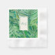 Ces serviettes de décoration de table de mariage sont disponibles en différentes options. Elles sont personnalisables avec vos monogrammes et autres arrière-plans. Elles montrent un mélange harmonieux de feuilles tropicales de verdure émeraude, de monstera, de feuilles de palmier de la nature et elles ont des tons verts et une typographie assortis. La superposition beige minimaliste est destinée à la personnalisation de votre monogramme et présente une illustration d'une rose. Hobinishop