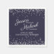Réception de mariage bleu marine (douche nuptiale, dîner de répétition, etc.) serviettes en papier avec parties scintillant argent et texte blanc. Personnalisez avec les noms du couple, la date du mariage et l'emplacement.