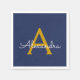 Serviette En Papier Marine Blue Gold Script Monogramme Nom Moderne