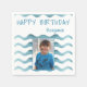 Marine Blue Waves Anniversaire de enfant Photo Napkins. Serviettes avec vagues abstraites bleues et blanches - idéal pour une fête d'anniversaire spécialement pour les garçons. Ajoutez votre nom et votre photo.