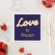 Love is Sweet, écrit en marquee lumières sur un arrière - plan bleu foncé donne à cette serviette brillant et brillant vintage. Il s'ajoute à la table des desserts. Faites défiler vers le bas pour voir la collection de mariages complète. Si des articles supplémentaires sont nécessaires pour votre événement, contactez-nous à prettyfancyinvites@gmail.com avec votre demande.
