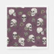 Dessinées à la main à l'encre noire, ces élégantes serviettes en papier gothique pour Halloween présentent un beau motif de crânes, de roses et de toiles d'araignée dans des tons crème et rose pâle, le tout sur un fond violet marron élégant.