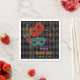 Ces serviettes de fête Mardi Gras sont ornées de masques de masques rouges et turquoise décorés de plumes et de perles sur un arrière - plan d'arlequin gris et noir. Personnalisez avec un nom et une date. Conçu par l'artiste mondialement connu Tim Coffey.