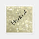 "Wicked" écrit dans un joli script de ruban orne cette serviette dorée glitterie, ce qui en fait un endroit parfait pour ajouter un peu de glamour à votre fête d'Halloween ou Mariage d'Halloween.