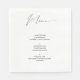 Utilisez ces serviettes pour un joli réglage de table à votre mariage, avec votre menu mariage ou votre menu d'anniversaire. Customisez-le avec votre propre texte. Ce menu mariage est doté d'un script moderne et d'une police sans serif propre pour le menu sur ce design minimal.