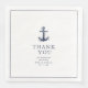 Les pièces de cette élégante suite de mariage présentent un style nautique classique et un style épuré et minimaliste. Des vagues stylistiques dans les teintes allant de l'aqua au bleu marine et une illustration d'ancrage et de corde apportent des accents uniques. Sur cette serviette en papier de coordination, la petite ancre en bleu marine sur un arrière - plan blanc est simple mais attrayante. Ajoutez votre message "Merci", vos noms et votre date de mariage à l'aide du modèle fourni. Idéal pour les mariages de club nautique, de bateau, de plage ou d'été. Recherchez ID836 pour voir cette suite complète et d'autres avec des accents d'éléments marins alternatifs.