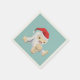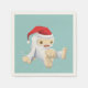 Un ensemble de serviettes en papier avec l'illustration d'un joli petit yeti de Noël, poupée en jouet, portant un chapeau de santa rouge. Le petit yeti a un fil à tirer pour le faire parler et il est couvert de fourrure blanche molle avec des accents brun clair. L'Arrière - plan est une couleur verte rétro.