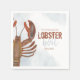 Décor de fête décoration minimaliste moderne dîner, une célébration élégante table en lin de patio, avec une table de provisions design servant langouste, table de dîner set crustacé rouge, fruits de mer principale rétro vintage plage, nouvelle Angleterre nautique été océan, élégant bol de homard simple tendance, aquarelle nature animal, typographie de calligraphie bleu marine, un design de script unique cool. Oeuvre dessinée à la main par Laura Lacina.