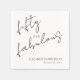 “Fifty and fabulous.” Own it and usher in 50 with style! Using this sophisticated minimal 50th birthday personalized paper napkin will help make her birthday a party to remember. Dramatic black handwriting script calligraphy and simple sans serif typography overlay a clean, white background. Personalize with her name and date of event. Your choice of 3 sizes: cocktail, luncheon, & dinner. Order a different size for each course of your celebratory meal! Matching and coordinating invitations, envelopes, labels, paper plates and other party supplies are also available.