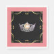 Montré sur les serviettes de lucheon standard blanc est une jolie couronne glamour argentée brillant sur l'arrière - plan noir avec une bordure corail-rose plus large et une bordure blanche plus petite autour de l'extérieur. Impression dorée d'un motif décoratif sur le dessus. Personnalisez avec le nom, la date, etc. si désiré ou acheter comme indiqué. Voir nos plaques de coordination.