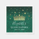 Vous cherchez une décoration de fête élégante pour votre thème de célébration or et vert ? Créez vos propres serviettes en papier personnalisées et enchantées en utilisant ce modèle DIY facile - parfait pour ajouter le nom de votre événement, la date ou un message spécial de remerciement. Présentant une illustration originale de conte de fées par Raphaela Wilson, les présentoirs fantaisistes mettent en valeur des roses aquarelles vertes luxueuses rehaussées d'une couronne dorée métallisée fausse et de confettis de papillons magiques. Idéal pour une quinceañera (XV) de forêt enchantée, une fête d'anniversaire sweet 16 de conte de fées, une baby shower princesse ou une douche de mariée pour la Saint-Patrick, ces serviettes personnalisées apportent une touche sophistiquée à votre décor de table. Préférez-vous une couleur d'accent différente ? Vous pouvez facilement remplacer les détails dorés métallisés faux par des détails rose doré, argent élégant ou n'importe quelle couleur (graphiques svg) pour convenir à vos goûts. N'hésitez pas à personnaliser davantage l'arrière-plan en ajoutant une texture de papier parchemin ancien vintage ou en changeant la calligraphie et la typographie moderne pour créer un souvenir véritablement unique et royal pour votre célébration. Amusez-vous ! Catégorie : serviettes quinceanera mis quince anos ; serviettes en papier mariage rose émeraude ; et serviettes en papier pour baby shower