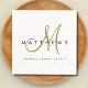 Minimal modern personalized Wedding Reception Napkins with gold monogram initial and black script font. Elke Clarke © A Black Tie Affair with an Elegant Monogram Design using popular typography. Black, gold and white colors can be changed using the customize menu or contact designer.