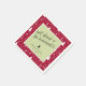 Calligraphie moderne "manger boire + être marié" superposée sur un carré jaune vert avec des serviettes en papier rouges à motif de verdure de Noël.