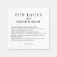 Fun moderne noir et blanc Fun Funny Faits Mariages serviettes. Ce design moderne et minimaliste de serviette mariage présente des faits amusants et amusants sur la mariée et le marié préféré de chacun dans un script moderne de calligraphie noire. Modifiez le texte en fonction des noms du couple, des faits amusants et de la date du mariage, ou de tout texte que vous désirez. Vous pouvez également modifier la taille de la carte. Un grand brise glace pour les clients ! Conçu pour coordonner avec notre collection de Mariages botaniques noirs et blancs Elegant Moderne.