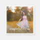 Serviettes modernes de remise des diplômes avec "félicitations à notre diplômée" dans une police d'écriture élégante avec une seule ligne de texte pour ses détails de remise des diplômes sur votre photo préférée. Un design simple qui fait de votre photo la caractéristique principale.