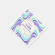 Fleur rétro avec cadre rond à la menthe et lignes ondulées bleues arrière - plan serviette d'anniversaire. Un service de massage en chambre est proposé sur demande.
