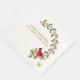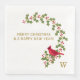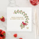 Personnalisez ces serviettes en papier dans le modèle avec votre propre monogramme initial. L'illustration présente un cardinal rouge debout sur une branche charnue incurvée avec des baies. Le texte à gauche dit : "Joyeux Noël & Bonne Année !".