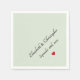 Créez votre propre personnalisation, personnalisée, élégante typographie noire / calligraphie / script / police sur la sauge claire couleur verte arrière - plan, marié / nom du couple, mariage / date anniversaire, coeur rouge, votre choix de couleur blanche ou écru, forgé ou de style standard, contact alimentaire, cocktail de fête déjeuner sur le dîner serviettes en papier qui ont l'air bien caché dans le col ou drapé sur votre laps. Il suffit de taper les noms de la mariée et du mariée ou de la femme et du mari, et la date du mariage, pour customiser. Serviettes élégantes en papier, parfaites pour la réception de mariage, les célébrations d'anniversaire, la fête de fiançailles, etc.
