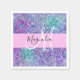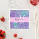 Glam violet, bleu et vert parties scintillant scintille le nom monogramme et les serviettes initiales. Votre nom personnalisé et votre monogramme sont écrits dans un élégant script écrit à la main avec un arrière - plan rose clair. Vous pouvez modifier la couleur du texte, le style et la taille de police à l'aide de l'option personnaliser.