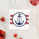 Bandes marines rouges et blanches avec ancre bleu marine et monogramme, personnalisez avec votre initiale.