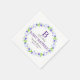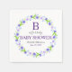 Un grand "B" monogrammé et violet est placé dans une couronne de fleurs de couleur douce pour notre B est pour serviettes de Baby shower bébé.