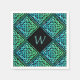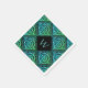Un ensemble de serviettes en papier monogramme avec un noeud bleu-vert celtique répétées en carreaux de diamant contre un arrière - plan noir. Modifiez l'original et faites-le unique !