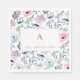Serviette En Papier Monogramme de fleurs aquarelles bleu pastel élégan