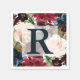 Monogram Napkin, Mariage floral de Bourgogne, rose et marine, avec une fleur d'aquarelle magnifique.