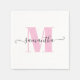 Serviette En Papier Monogramme de pois rose et blanc clair